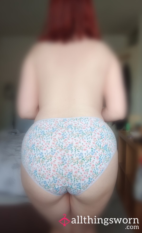 *free Uk Shipping* White Cotton Flor*l Full Coverage MILF Panties