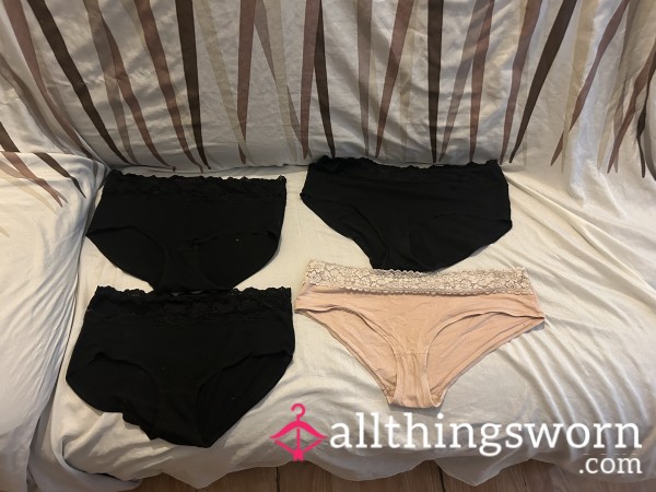 Cute light pink lace panties, which I've just had s** in and I'll be wearing to sleep .