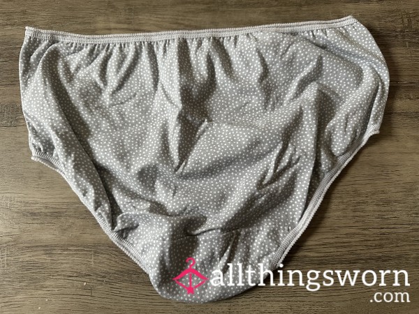 Extremely well worn Grey briefs. These have been woth me since college. Has a couple holes and run...