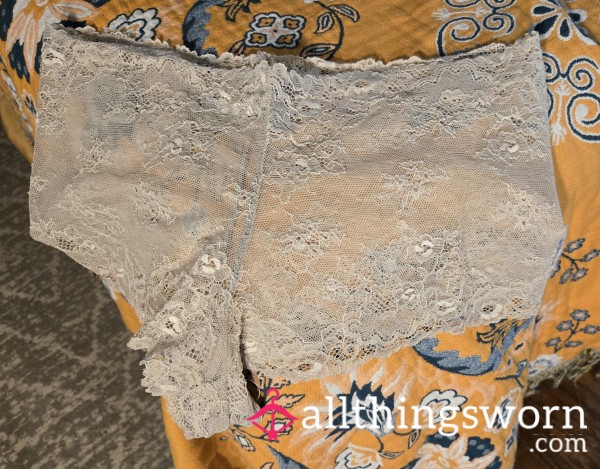 All lace panty with full back. Black, size small. Very well worn. Has a few holes in the...