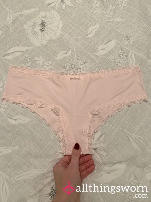 Shocking pink panties that have been soaked by me, you'll love em'!...
