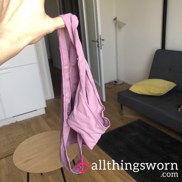 Deep rich pink with light pink polka dots and lace edging. Worn for 24hrs...