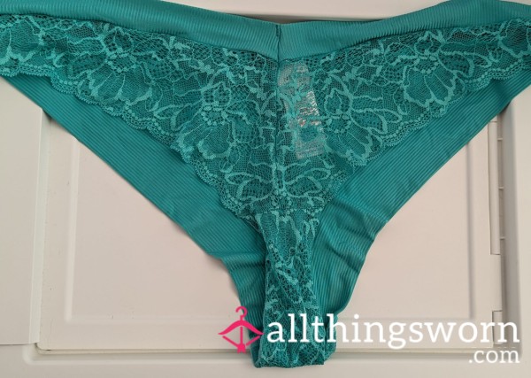 Cheeky style black lace with criss cross design over the top of the a**, little bow in front....
