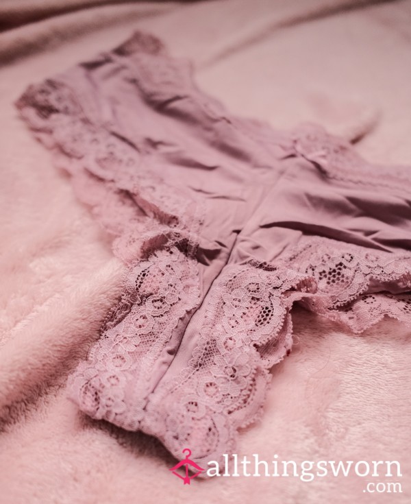 Large lacy panties. Slight discoloration from lady juices. Can provide proof of wear....