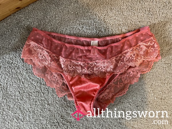 Get a look at my arse in these cheeky pink panties! The s**y mess shows every detail clingy to my curves