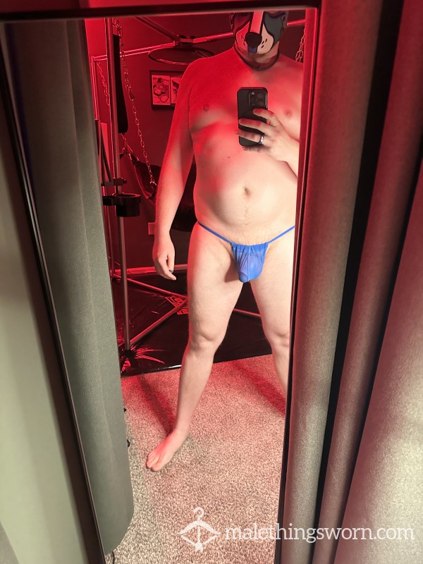 Sheer g-string size large. Customizable. Love how it hugs my c*ck and balls. Shows it off just right too...