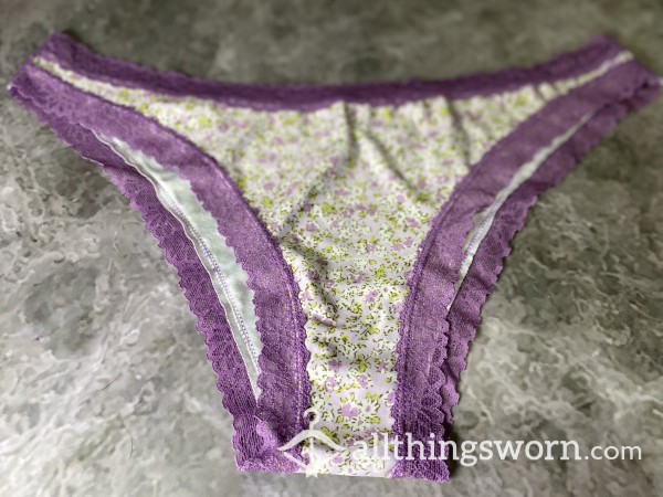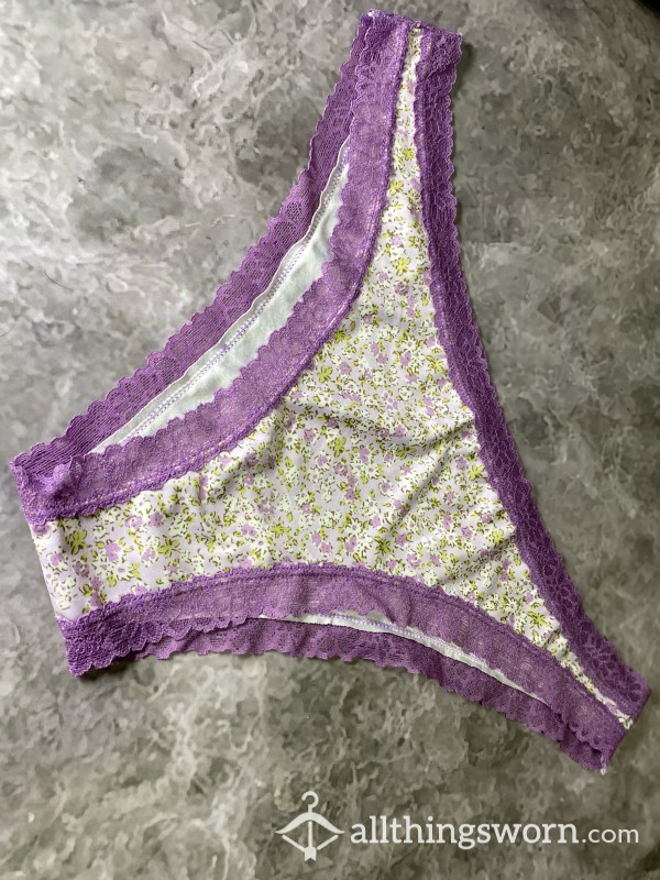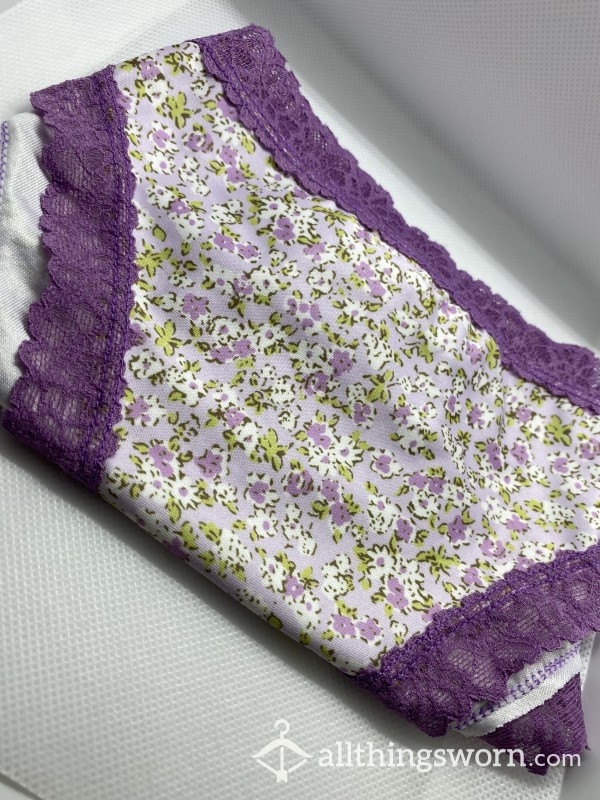 Old full back panties, cotton apart from the trim. 24 hour wear £5 per extra day...