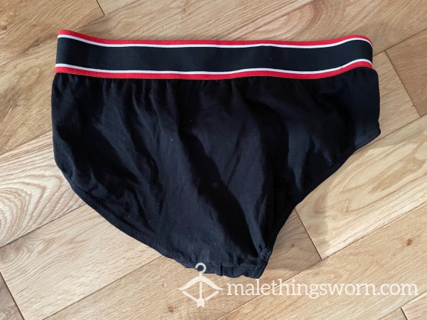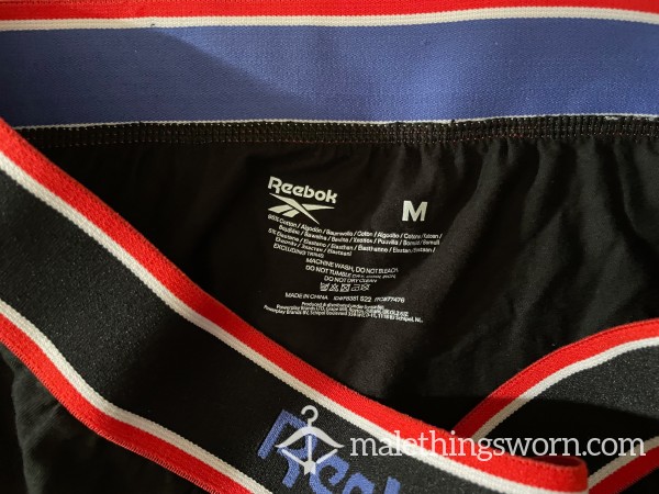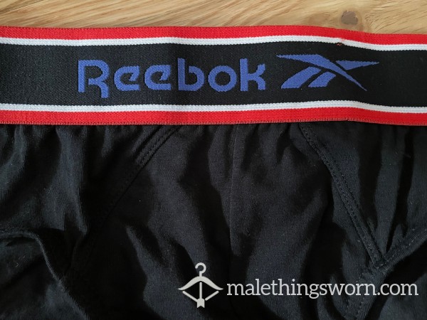 Reebok Training Black Briefs with red stripe and blue logo waistband, work out underwear. Size Medium. Perfectly designed for working out and sports and super s**y and comfortable too! I can wear it all day and night and during workouts and playtime and they get sweaty and man scented. Will wear it for 2 days straight or longer if you want, may even have a little pre-c*m in it. If you want I can c*m in it if you want for a little extra. Just message me with requests. Free UK postage. International postage is extra.