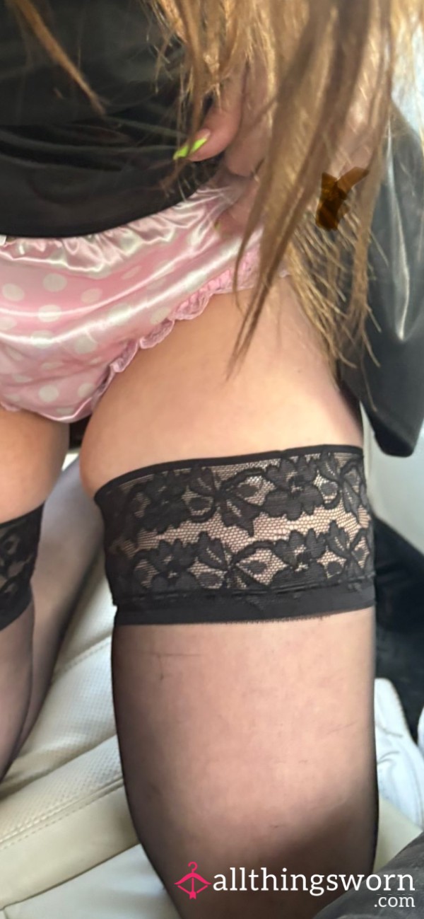 My s**y pink satin polka dot knickers arrived to big I’ve had a little play in them now they are ready to sell x