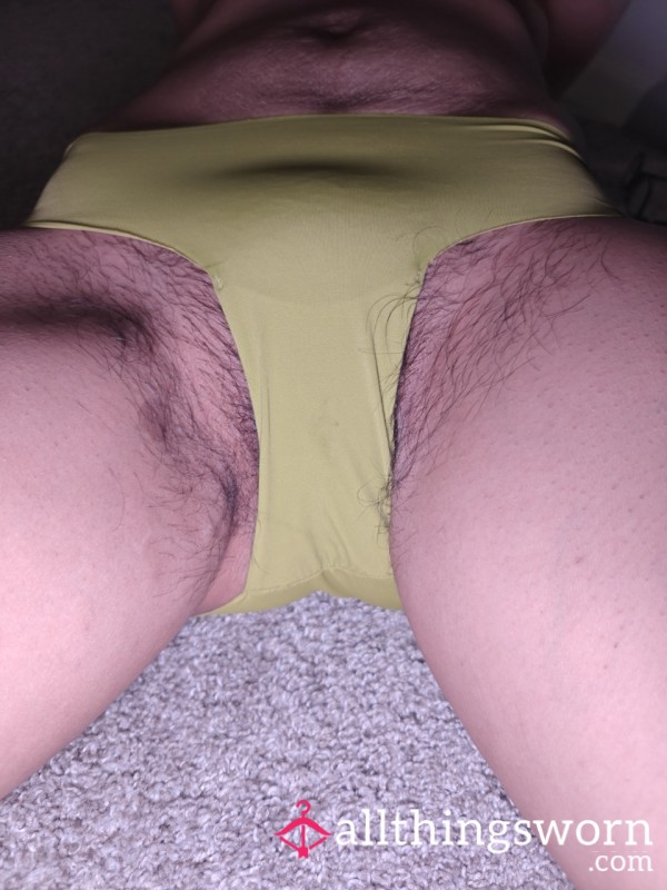 Enjoy the experience of these smooth, well contoured panties as much as I did. Currently my bush is on, so you can see my hair p**king out from the sides. ;)
