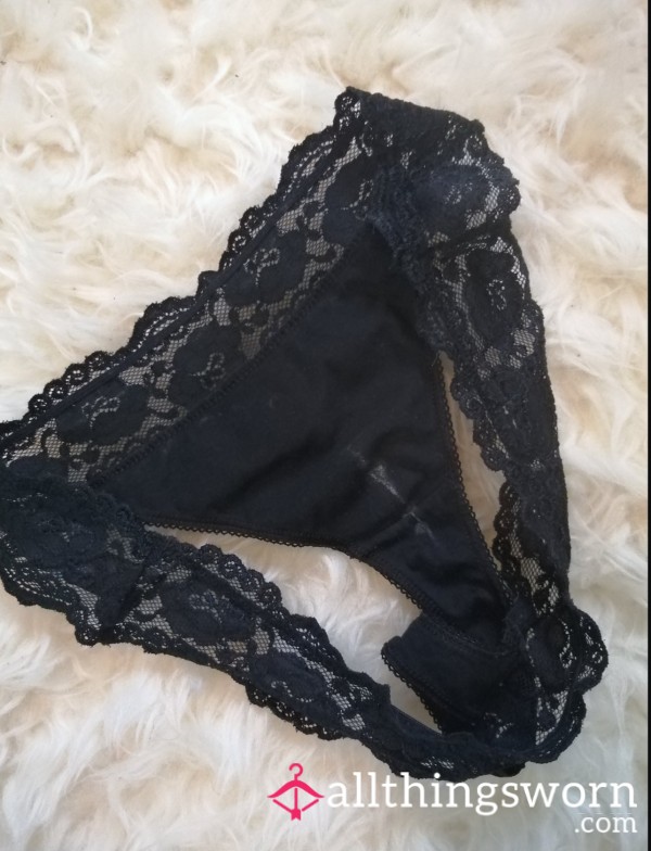 Lacy bkack and cream underwear with an saucy, naughty open part at the back 😋 get in touch...