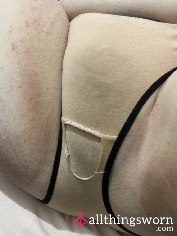 Very worn panties. Had these for a while and they are beginning to rip. On it's last wear before finding its home with you. Light orange/beige. Rip in crotch formed. I'll make it smelly for you.