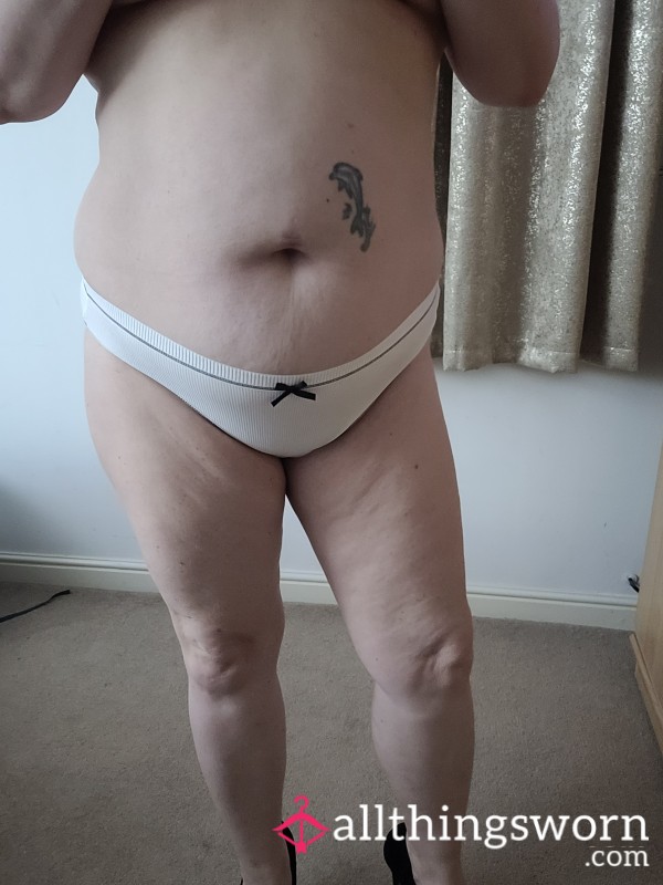 Cute little bow on front. Will be worn for 24 hours before sending. Can include play amd c*m in them. Also be worn for run or gym cla**. Additional days and pictures and videos can also be added. Message with any requests