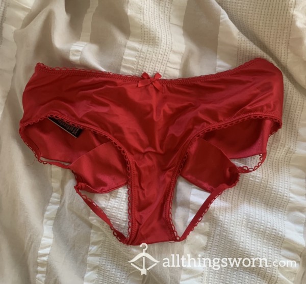 Hot S**y VS Victorias Secret Wet Satin Silk Bow Soft Panty Panties Custom Video Pics Booty A** Pu**y Toys Play Sub Dom Red Wet Creamy C*m