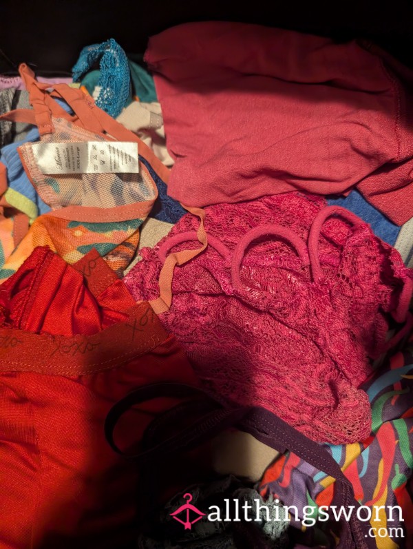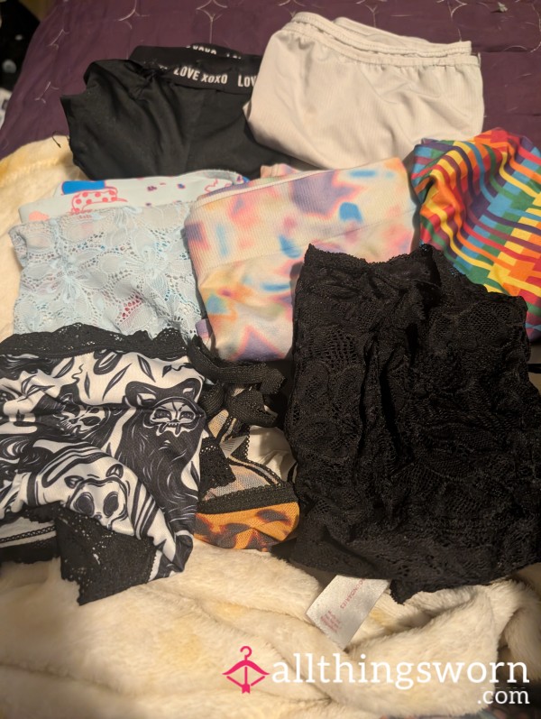 Well worn Grey gray and pink panties comes with 48 hour wear! +$10 for shipping outside the US...