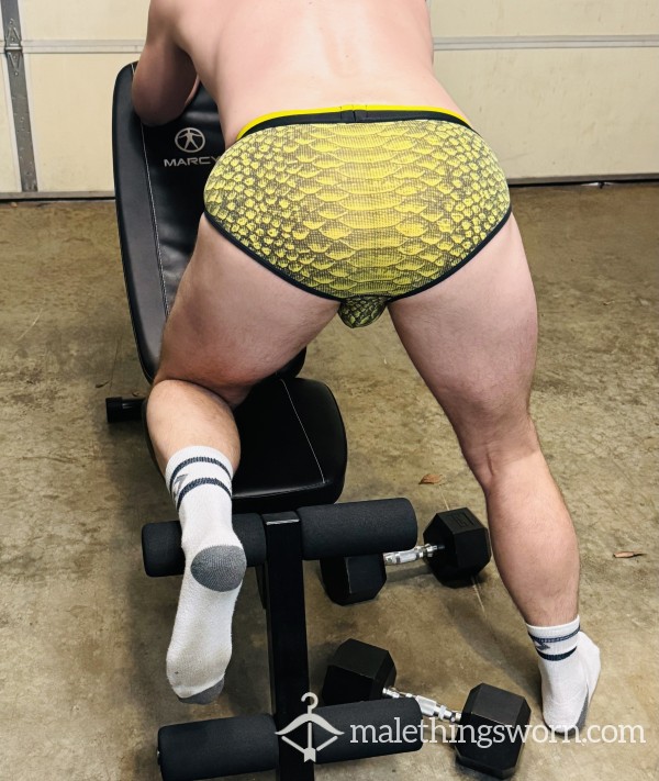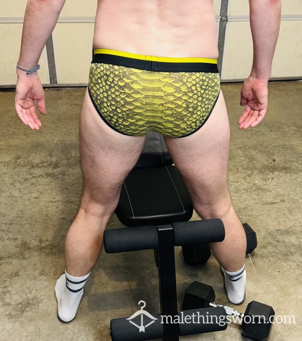 I’ve had this pair of briefs for several years and it’s a pair I love to wear during gym cla**. They are comfy and slightly sheer when stretched. Size small. Nasty Pig brand. Let me know if you have specification requests.