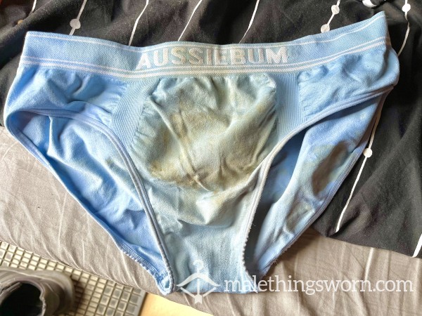 Tight Blue Diesel Briefs strapped on me 3 days straight and soaking everything up. Updates during wear. Add-ons...