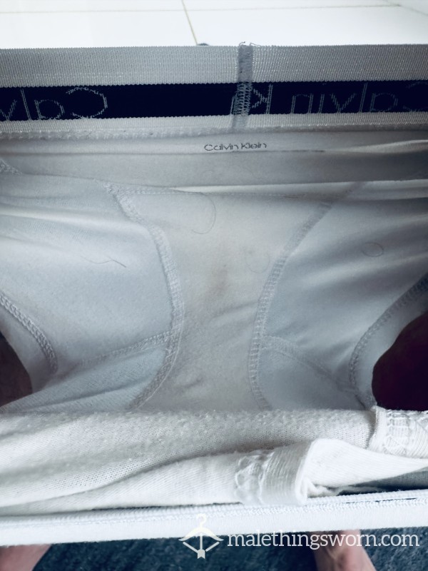 Nothing s**ier than a white pair of Calvin Klein boxers fresh from the gym, worn and stained!