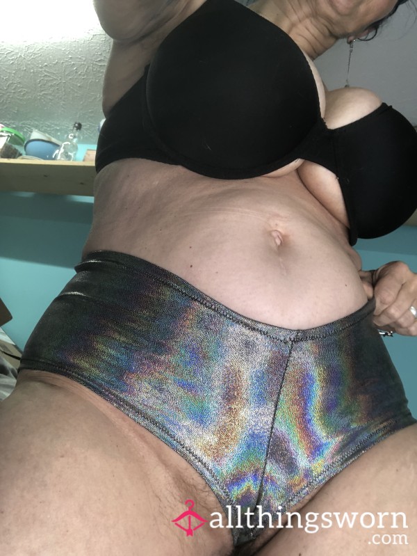 Dirty Panties Worn Panties Booty Shorts Cheekies Cheeky Panties Hologram Metallic MILF Panties Sissy Panties S**y Panties Mistress Kinky Executive Silver Panties Fullback Panties