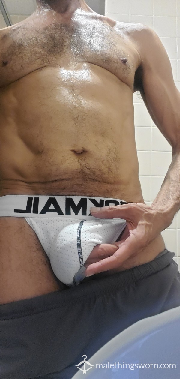 Many of the jocks I sell are ones that I'm replacing as they've worn out from heavy use during workouts and s**. Others are new and can be customized. The other guys you see pictured in c*mmy thongs are my subs as I have a fetish for hot muscle bu*ts in thongs.