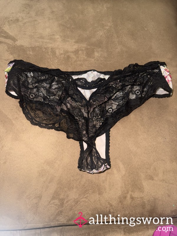 Gray sheer with lace trim panties with booty cutout. These panties are so s**y they’re already creamy from...