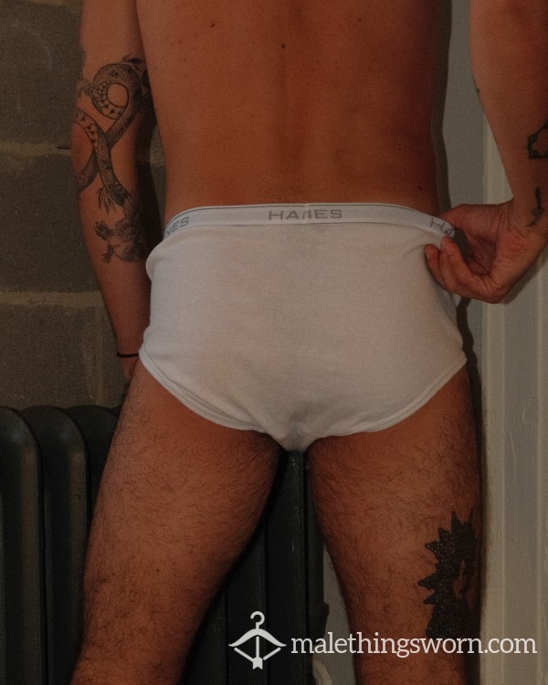 Worn for two intense 2-hour gym sessions — these briefs are soaked in sweat, clinging to every inch...