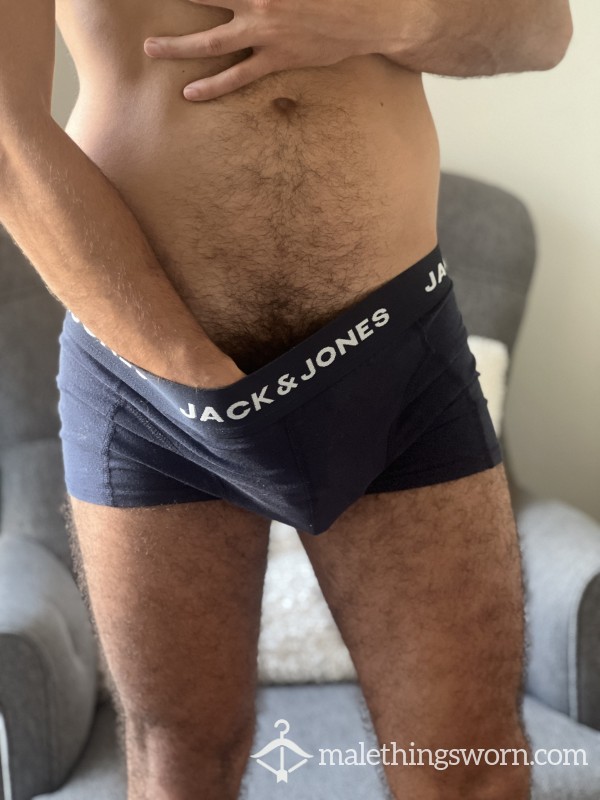 Nice pair of grey Hanes briefs w red waist band. The dark spot in pictures is prec*m. Size...