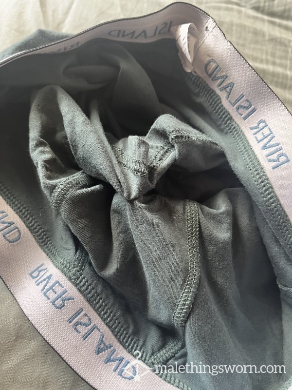 Black bond briefs with white waist band. Size medium Well used pair