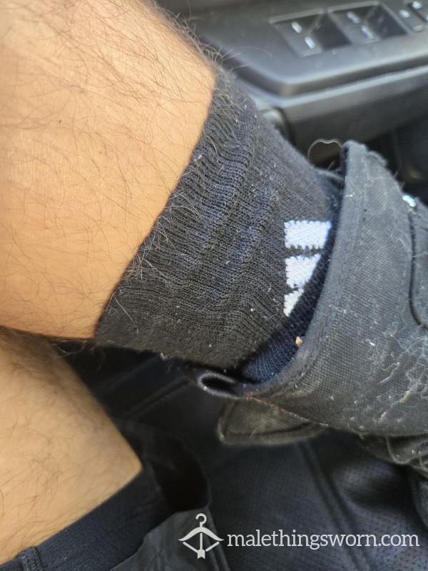 Worn by a real man — today, September 12. Under Armour boxer briefs gripping me tight, Adidas crew socks stuffed in my boots, both soaked with sweat from a full day of grinding outside. These aren’t clean or cute — they’re worked in, drenched, and stinking of raw masculine musk.