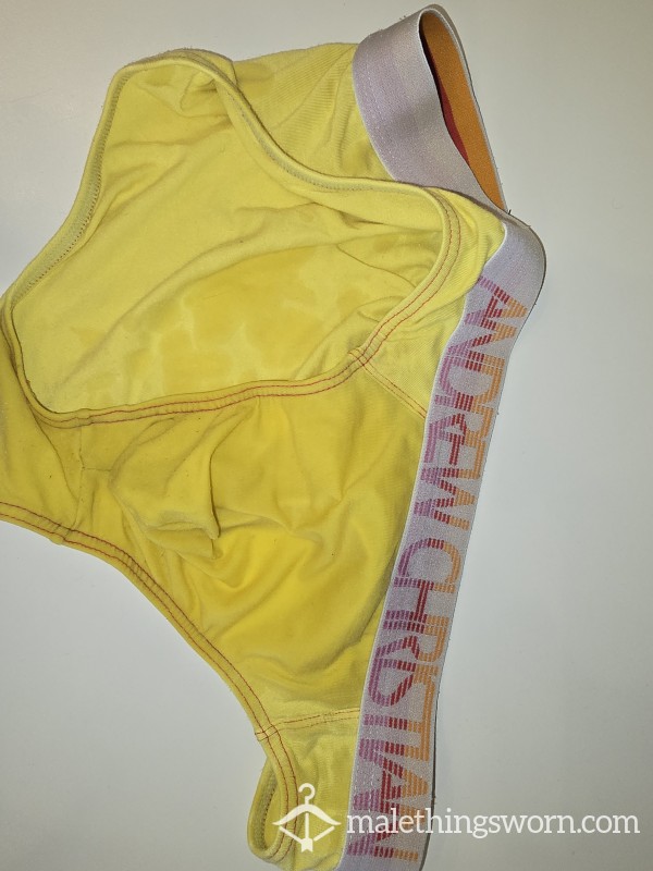 Black and blue brief with thong style design. Super s**y and comfortable. Worn but can be extra smelly...