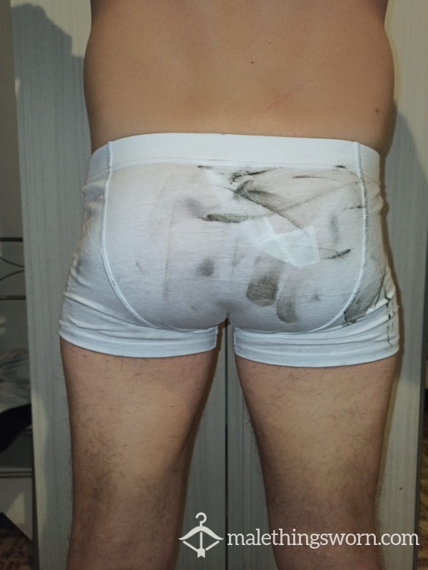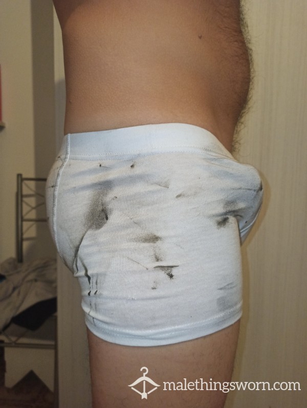 These white thongs have been worn for one full day of intense workouts, carrying the unique scent of...