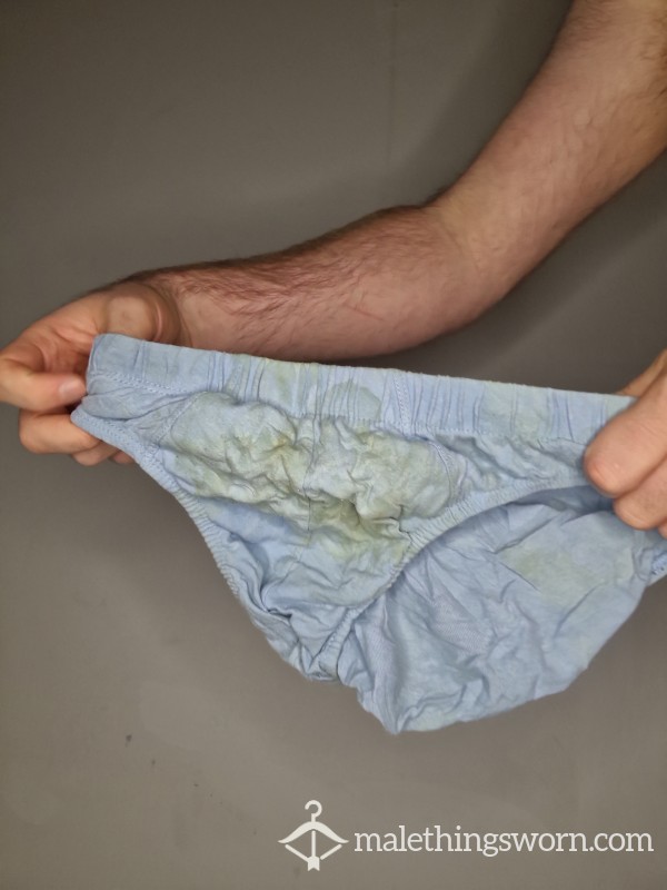 Blue briefs that I've been c*mming in for a few months. They're pretty ripe and I'd love to shove them in your face. But buying them is the next best thing I suppose!
