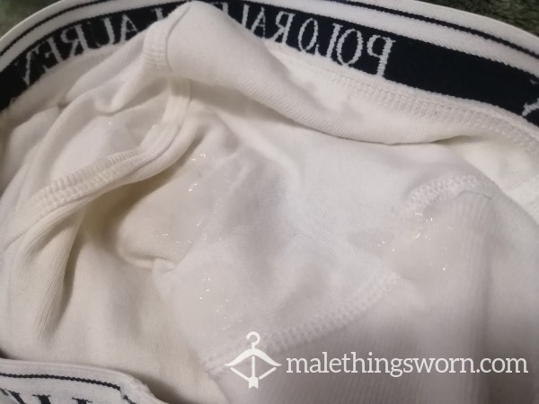 5 days well worn white dad briefs full of my golden yellow, prec*m, c*m and my masculine musky...